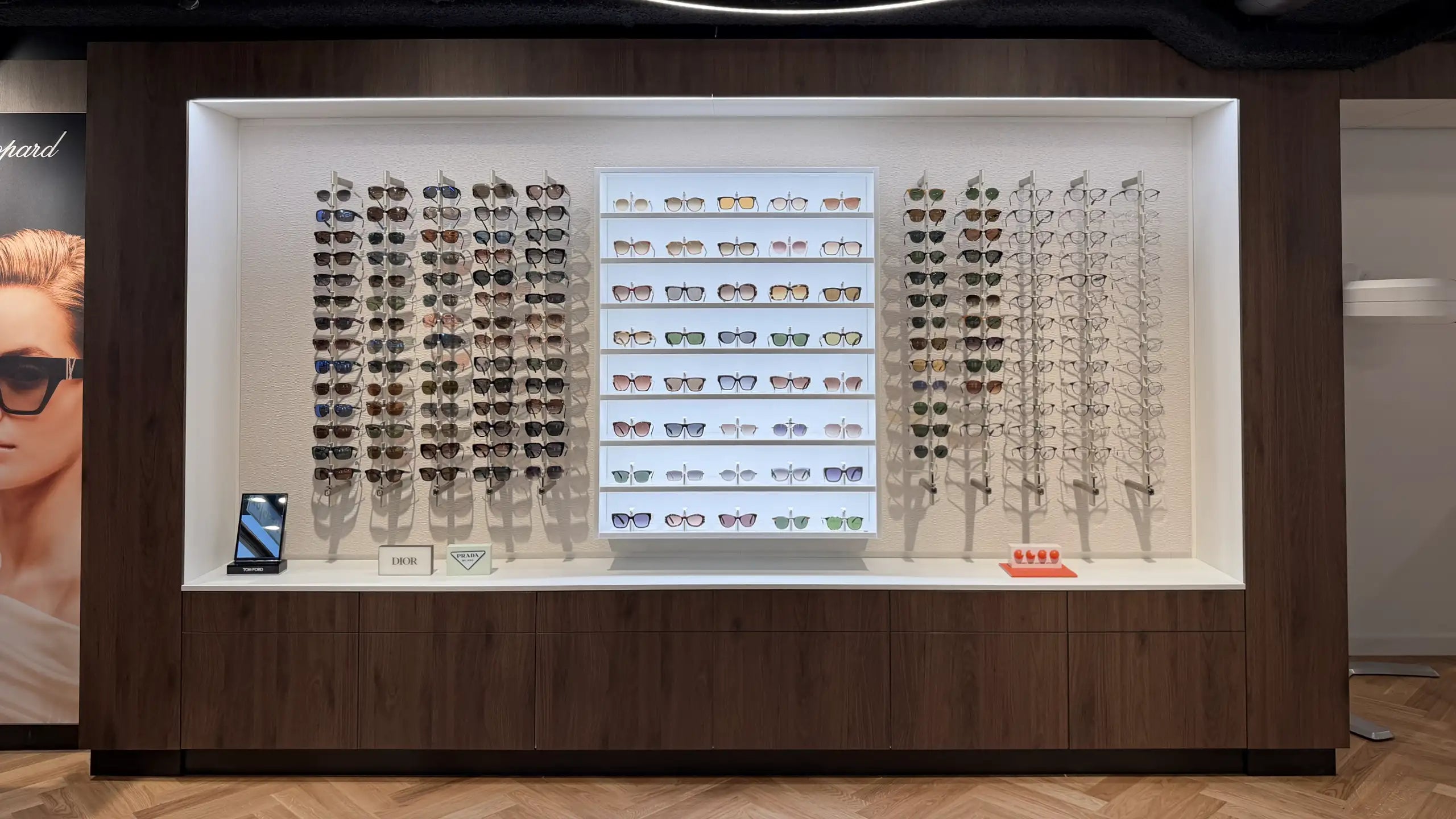 Locked Sunglasses Wall Display for Security and Style